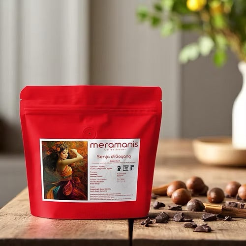 "Goyang", meaning to dance or to swirl in Bahasa, reflects the blending process — swirling together of two different coffees.